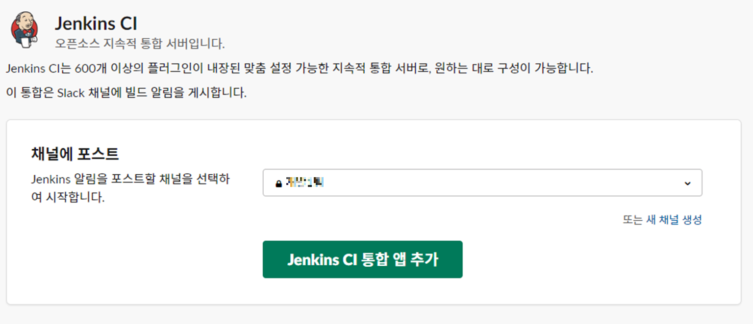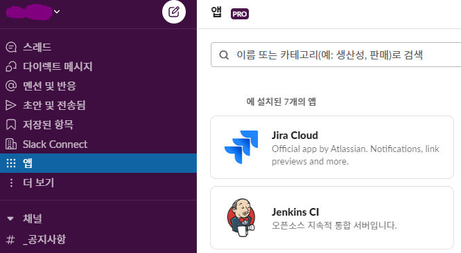 - 슬랙에 들어가 더보기 → 앱을 클릭 후 Jenkins를 선택합니다.