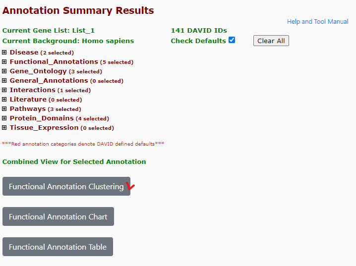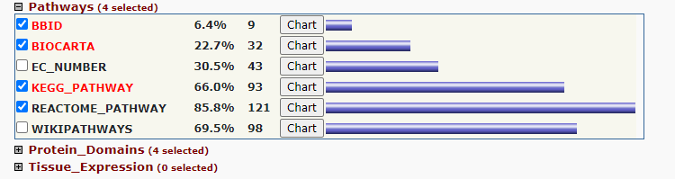 빨간색이 기본으로 선택되는 주석들..! 난 주로 기본에 REACTOME_PATHWAY만 더 선택해서 보곤한다..